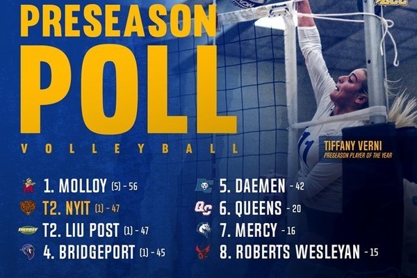 Two days from the NYIT women's volleyball season opener, the team's captain, Tiffany Verni, has garnered the top preseason honor from the East Coast Conference.