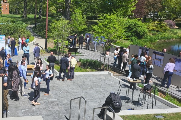 Students in New York Tech's School of Health Professions gathered on May 7 for the annual Aletheia Research Symposium. Held every spring, Aletheia (Greek for "truth") provides future healthcare professionals the opportunity to showcase their research findings and defend the capstone projects that they have carried out under faculty supervision. This year, student research was displayed across 30 posters, representing research from the school's five fields: physical therapy, physician assistant studies, occupational therapy, interdisciplinary health sciences, and nursing.